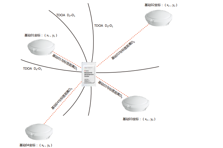 在室内定位系统中,人员或物品上所佩戴的定位标签利用UWB脉冲信号发射出位置数据, 定位基站接收,计算出定位标签信号到达不同定位基站的时间差,然后处理软件对位置进行解算,最终得到被定位物体的位置.