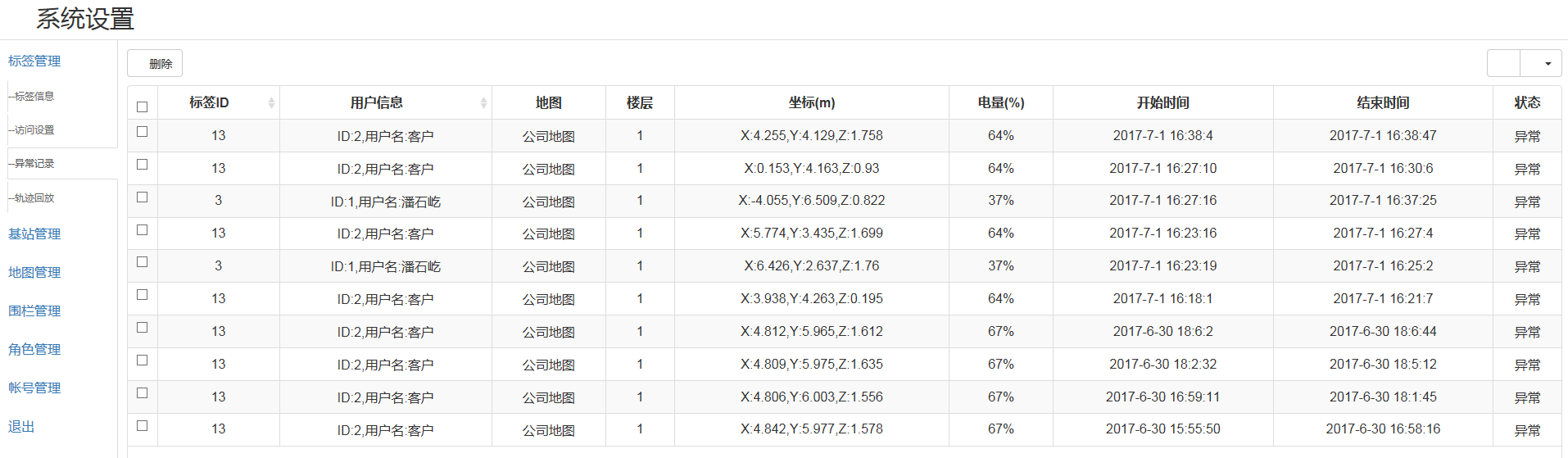 1.通过网络进入管理者界面,界面中会显示定位人员实时准确位置。